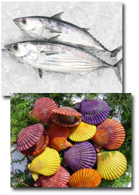 マッチタウン贈呈式 ★愛南町より 『ヒオウギ貝』を両チームに贈呈 愛南町由良半島の沖で飼育しています。食卓をオレンジ、黄、赤、紫の100%天然色で彩ります。特徴は見た目の華やかさと、磯の香り、ホタテに似た食感が挙げられます。また、平成19年3月15日に県のブランド認定の「愛」あるブランド産品認定を受けております。 ■贈呈者 愛南町長 清水 雅文 様 |