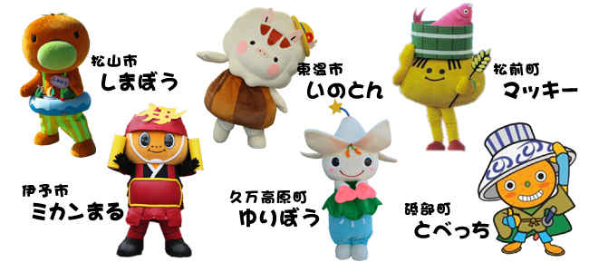松山広域6市町のゆるキャラが大集合! 6市町のゆるキャラたちがニンスタに集結! とってもかわいいゆるキャラたちとみんなで触れ合おう! ![]() |
