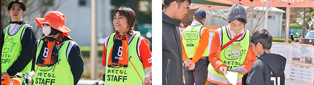 【活動内容】スタジアム場外において来場者へのご案内、場外でお困りになられている方のサポートなど
