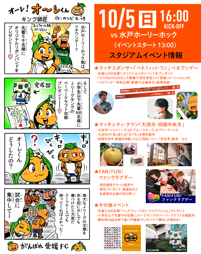 明日 10/5(日)は愛媛FCホームゲーム vs 水戸ホーリーホック