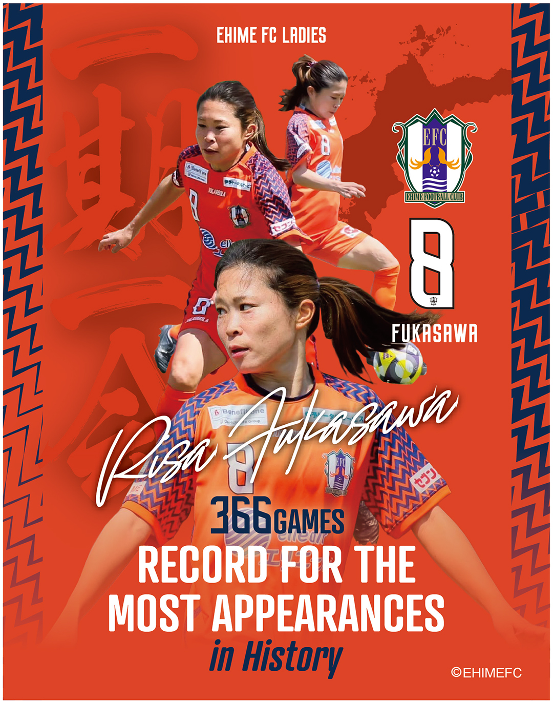 愛媛FCレディース、深澤里沙選手が2025プレナスなでしこリーグ1部 第20節において、リーグ通算出場記録 歴代1位の『366試合出場』を達成しました。