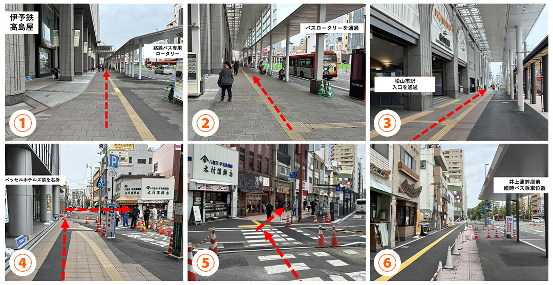- 途中「松山IC高速入口・乙井橋バス停(マクドナルド様前)」「立花駅前」「一番町・三越前」「松山市駅」に停車し、最終「JR松山駅」まで運行。