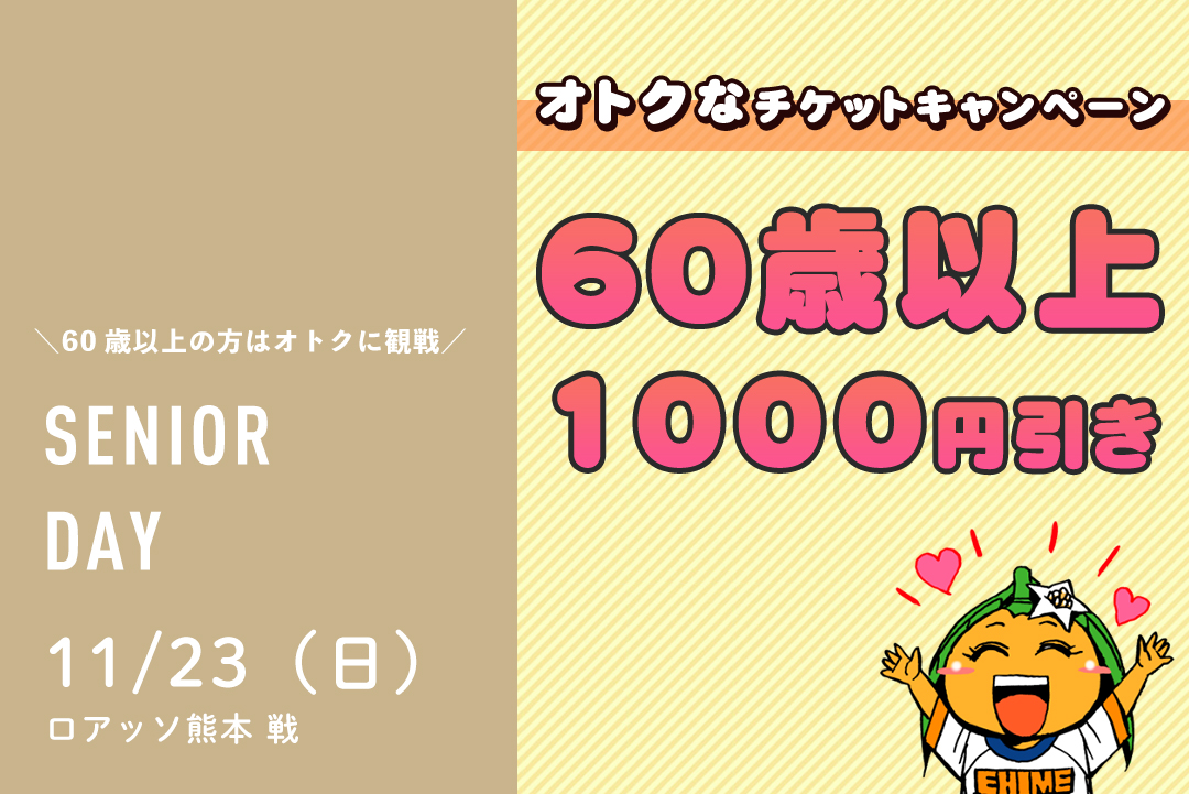 11月23日(日)愛媛FCホームゲーム最終戦、ロアッソ熊本戦にて『60歳以上1000円引き優待』チケットキャンペーンを実施いたします!