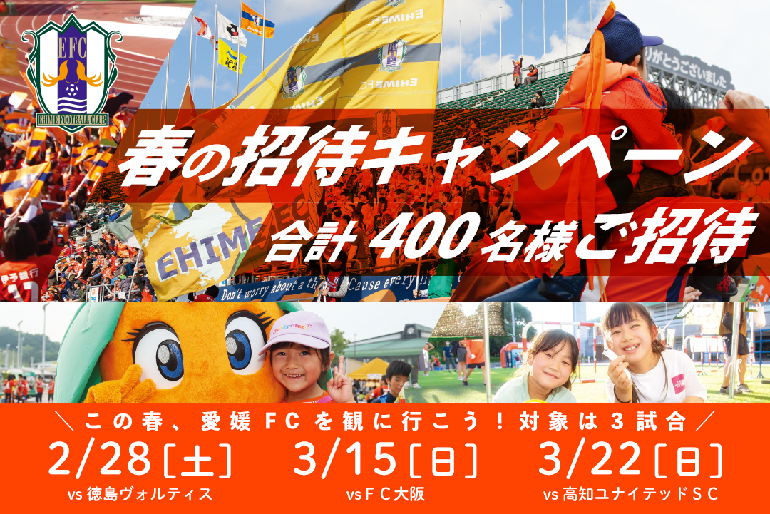 春の招待キャンペーン!愛媛FCホームゲーム3試合で合計400名様ご招待!