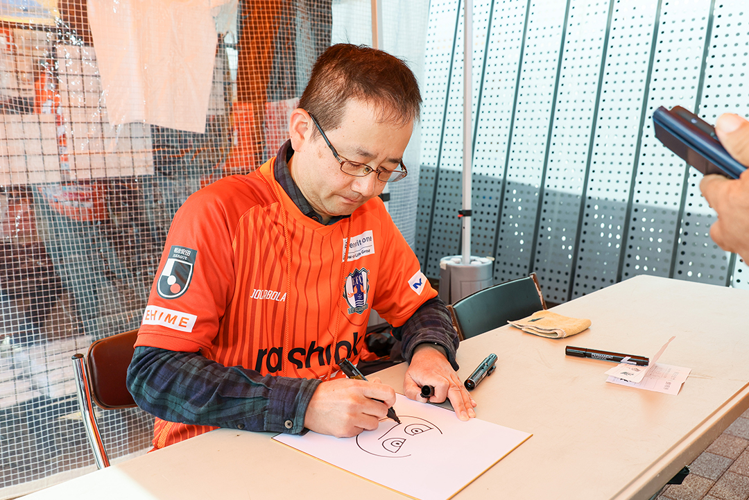 LINEからご応募いただいた方の中から抽選で30名様に参加権が当たります!愛媛FCマスコット生みの親にその場でマスコットを描いてもらえる貴重な機会です。ぜひお申込みください!