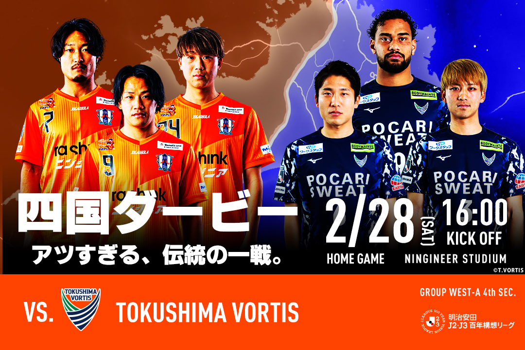 アツすぎる伝統の一戦、「四国ダービー」。是が非でも勝利をもぎとるため、オレンジ一色のスタジアムで徳島を迎え撃ちましょう!この日は絶対にニンスタに集まろう!