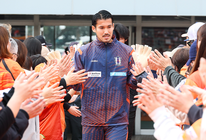 試合前の選手のウォーミングアップが間近で見学できます!ピッチインの時に選手とハイタッチも!