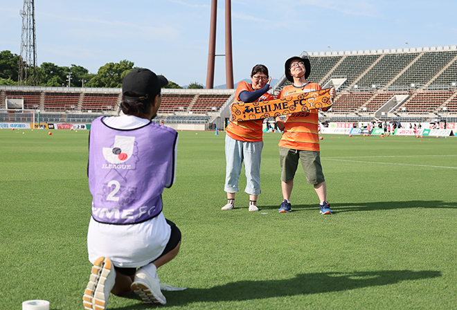 「ehimefc_1cut」の写真撮影等もされている愛媛FCクリエイティブディレクター 佐藤涼介さんが、ご参加グループごとにスタジアムピッチサイドで写真を撮影します。