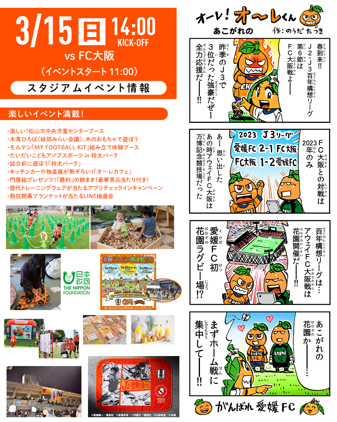 明日、3月15日(日)は、愛媛FCホームゲーム vs FC大阪 14:00キックオフ!