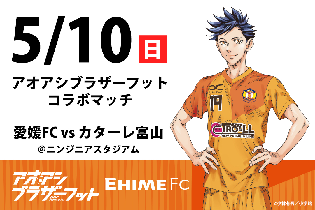 愛媛FCでは、5月10日(日)のカターレ富山戦にて、週刊ビッグコミックスピリッツにて連載されております、愛媛県出身の漫画家 小林有吾先生の漫画『アオアシ ブラザーフット』とコラボレーションした様々なイベントを開催いたします。