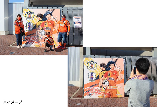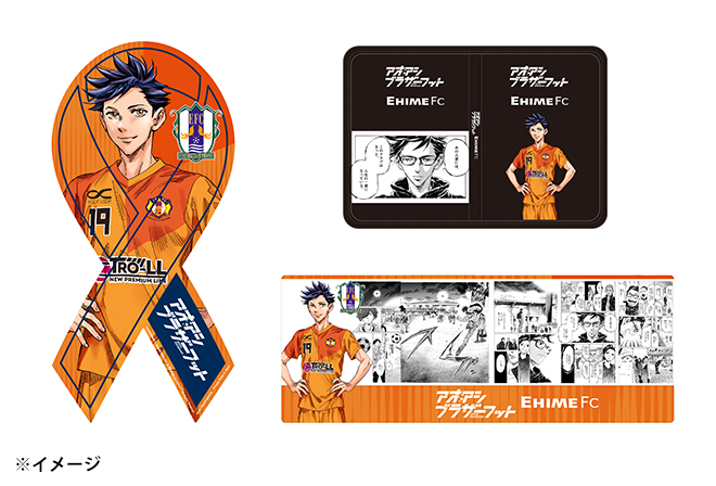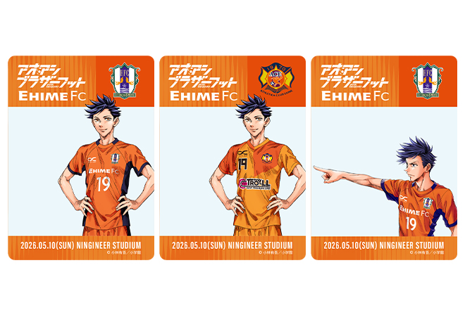 百年構想リーグでは、愛媛FC選手たちが『アオアシ ブラザーフット』に登場する「AC愛媛」を再現したユニフォームを着用しております。