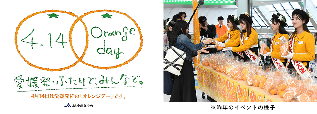 愛媛発祥の「オレンジデー」を盛り上げて、生産量日本一を誇る愛媛県産柑橘のPRと消費拡大につなげるJA全農えひめ様の取り組みに賛同し愛媛FCからは羽田敬介ヘッドオブネットワーキングとマスコットの伊予柑太が柑橘配布イベントへ参加いたします。