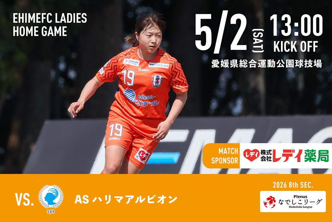 5月2日(土)愛媛県総合運動公園球技場にて、ASハリマアルビオンと対戦!