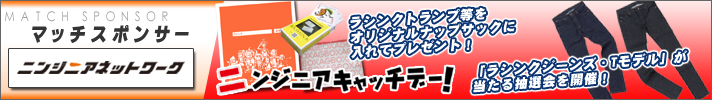 「ラシンクジーンズ・Tモデル」が当たる! マッチスポンサーニンジニアネットワークによるお楽しみ抽選会を開催! ニンジニアネットワークが自信を持って提供するラシンクジーンズ・Tモデルがなんと4名様に当たります! しかもなんと当選した人は当日サイズを採寸!あなたにピッタリのジーンズをプレゼントします! ※試合終了後にサイズの採寸、スタジアム内での贈呈式があります。 ※サイズが無い方(お子様等)が当選された場合はオリジナル文具詰め合わせをプレゼントします。 【抽選方法】 ★当日、ニンジニアブースで合計2,000円(税抜)以上商品をご購入いただいた方の中から抽選します。 【景品内容】 ・「ラシンクジーンズ・Tモデル」 4名様 (ジーンズブルー 2名様/ジーンズセミブラック 2名様) |