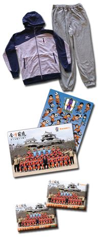 マッチスポンサー試合前贈呈式 ★JALより 『うどんですかい』を両チームに贈呈 ■贈呈者 日本航空株式会社 松山支店長 山村 彰一 様 日本航空客室乗務員 |
