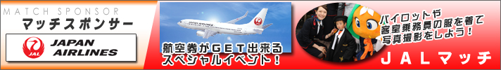 ビジョンに映って航空券をもらっちゃおう! JALプレゼンツ! JAL松山-東京往復ペア航空券やホテルJALシティのペアディナー食事券などが当たる大抽選会を開催! 今回の抽選方法がかなり特別!スタンドにいる皆さまをカメラでビジョンに映しますので、航空券が欲しい人はどんどんアピールしましょう!一番インパクトがある人を日本航空の客室乗務員が選出!ビジョンに大写しになり、見事、航空券をGETとなります! 【当選景品】 ・JAL松山-東京往復航空券 ・・・ ペア1組2名様 ・ホテルJALシティ松山 ペアディナー食事券 ・・・ ペア3組6名様 ・JALお楽しみギフトセット ・・・ 1名様 ※賞品の航空券は、搭乗可能日、利用期間などに制限のある航空券です。 ※ペアディナー食事券、お楽しみギフトセットの抽選方法は従来通りマッチディプログラムによる抽選となります。 【場所】スタジアム内 |