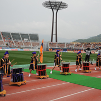 伊方堂々太鼓ジュニアの演奏披露! 芝生広場での演奏の後はスタジアム内でも演奏披露! 伊方堂々太鼓ジュニアによる元気いっぱいの演奏をぜひお楽しみください! 【場所】スタジアム内 バックスタンド前 |