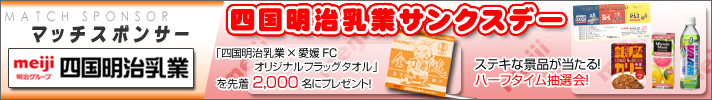 マッチスポンサー試合前贈呈式 ★四国明治乳業より 『ヴァ-ムウォ-タ-クリアアップル(500ml×24) 3ケース』を両チームに贈呈 ■贈呈者 四国明治乳業株式会社 代表取締役社長 泉屋 繁 様 ※贈呈品は変更になる場合がございます。 |