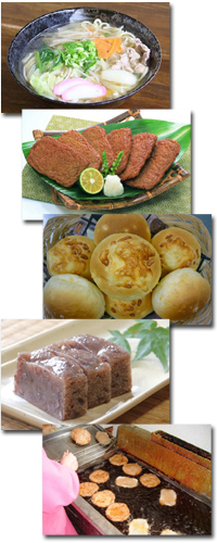 八幡浜市・大洲市のご当地グルメをお楽しみください! ★八幡浜市 八幡浜ちゃんぽん推進協議会 八幡浜のソウルフードとして、永年愛され続けている「八幡浜ちゃんぽん」が、今年もオ~レカフェに登場。スープは“あっさり”魚介風味!具材は“たっぷり”野菜でとってもヘルシー!麺は“もっちり”中太麺!“あっさり”“たっぷり”“もっちり”と三拍子揃ったこの味を、ぜひこの機会にご賞味下さい。 なお、11月14日(土)、15日(日)には、ご当地ちゃんぽんの祭典「ワールド・ちゃんぽん・クラシック」が道の駅・八幡浜みなっとで開催され、全国のみならず韓国からも、各地の特色を生かした個性的なちゃんぽんが八幡浜に集結しますので、ぜひご来場ください。 八幡浜市観光物産協会 平成25年7月に開催された「第3回みなとオアシスSea級グルメ全国大会in苫小牧」において、見事「グランプリ」を受賞した“アツアツ”“サクッと”“ジューシー”な「じゃこカツ」を筆頭に、八幡浜近海で獲れたホタルジャコ(ハランボ)の小魚を骨・皮ごとすり身にしたカルシウム満点の伝統の一品「じゃこ天」など、熟練された職人が一つ一つを丁寧に仕揚げる一品をご堪能下さい。 就労継続支援A型KOHOLA 清見ジュースを練り込んだみかんパン!塩味とチーズ味がございますのでお好みでどうぞ!また、ほんのり清見の香りのする飲むぜりーも販売!清見の香りをお試しください! ★大洲市 大洲市物産協会 大洲藩江戸家中の秘宝菓子として作られた「志ぐれ」をはじめ、わらび餅をこし餡で包んだ「月窓餅」ほか、大洲市の特産品を色々販売します。 じゃこてん下坂 伊予灘・宇和海で獲れた活きのいい新鮮な魚をすり身にして、油で揚げた美味しい「じゃこ天」です。保存料は使用しておりませんので、素朴で自然な味わいをお楽しみ頂けます。ぜひ一度、ご賞味ください。 |