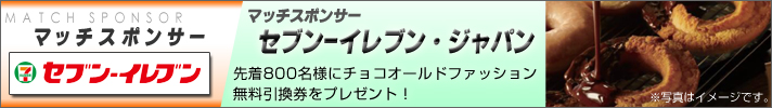 チョコオールドファッション無料引換券がもらえる! マッチスポンサー セブン-イレブン・ジャパン プレゼンツ! セブンイレブンの店舗で大人気セブンカフェドーナツの「チョコオールドファッション」1個が無料になる特別引換券を先着800名様にプレゼント! 【場所】バックスタンド/ホームゴール裏スタンド 各入場口 【時間】17:00~(開門時※先行入場は16:45) |