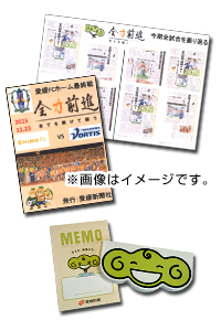 来場者全員にプレゼント! マッチスポンサー愛媛新聞より「今季の愛媛FCを振り返る特別紙面&メモ帳」をなななんと来場者全員にプレゼント! この特別紙面は今シーズンの全41試合の結果記事が掲載されています!J1昇格となるであろうこの記念すべきシーズンの貴重なメモリアルアイテムになります! また、裏面は愛媛FCのフラッグがデザインされていますので選手入場時はこれを掲げてスタンドをオレンジに染めよう! 【場所】ホームゴール裏スタンド/バックスタンド 各入場口 【時間】12:00(開門時・先行入場は11:45) |