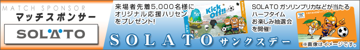 SOLATOサンクスデーお楽しみ抽選会! マッチスポンサー太陽石油プレゼンツ! SOLATOガソリンプリカやが当たるお楽しみ抽選会を開催! ■当選景品 ★SOLATOガソリンプリカ(5,000円分) ・・・ 2名様 ★SOLATOガソリンプリカ(3,000円分) ・・・ 10名様 【場所】スタジアム内 【時間】ハーフタイム |