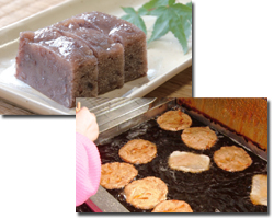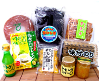 大洲市のご当地グルメ満載!★大洲市物産協会 大洲藩江戸家中の秘宝菓子として作られた「志ぐれ」をはじめ、わらび餅をこし餡で包んだ「月窓餅」など大洲市の特産品を色々販売! ★じゃこてんや下坂 伊予灘・宇和海で獲れた活きのいい新鮮な魚をすり身にして、油で揚げた美味しい「じゃこ天」!保存料は使用しておりませんので、素朴で自然な味わいをお楽しみ頂けます。
