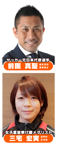 応援団長トークショー! 応援団長自身が経験したスポーツを楽しむ感覚、応援のチカラ等についてお話しをしてもらいます。 ★応援団長 前園 真聖(まえぞの まさきよ) 1973年生まれ 鹿児島県出身 サッカー元日本代表選手。1992年にJリーグ・横浜フリューゲルスに入団。日本が28年ぶりに出場した1996年のアトランタオリンピックでは、チームのキャプテンを務めブラジルを破る「マイアミの奇跡」を演出。選手引退後は、自身でサッカースクールを主催し、その普及活動に取り組みながら、サッカー解説者や各種バラエテイ番組への出演など幅広く活動を展開している。 三宅 宏実(みやけ ひろみ) 1985年生まれ 埼玉県出身 女子重量挙げ48kg級および53kg級の日本記録保持者。2012年ロンドンオリンピック重量挙げ女子48kg級で銀メダルを獲得。日本の女子重量挙げ史上初のメダル獲得者となる。2016年リオデジャネイロオリンピック48kg級でも銅メダルを獲得し2大会連続でメダルを獲得。現在も選手、指導者として活躍中。 【場所】イベント広場 特設ステージ 【時間】16:15~16:40 |