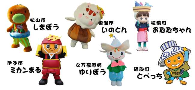 松山広域6市町のゆるキャラが大集合! 6市町のゆるキャラたちがニンスタに集結! とってもかわいいゆるキャラたちとみんなで触れ合おう! ![]() |