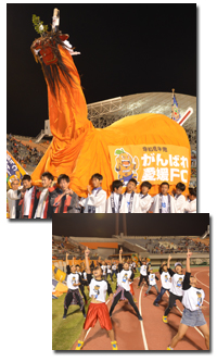 宇和島の牛鬼がニンスタ襲来! 今年も宇和島の牛鬼がニンスタにやってくる! 超ド級の大きさで観客席にも迫る勢い!会場内を勇ましく練り歩く姿はまさに圧巻です! さらに「PUMP UP CREW」も登場!ガイヤで会場を盛り上げます! 【場所】スタジアム内 【時間】ハーフタイム |