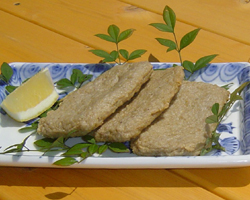 伊予市のご当地グルメ!★上灘漁協女性部加工部 伊予灘で水揚げされた獲れたて新鮮な魚をすり身にして、丹誠込めて手作りした伊予市双海地域名物の「じゃこ天」です。ヘルシーでカルシウムたっぷりの味は県内外の方から好評を得ています! |