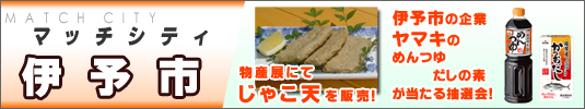 マッチシティ伊予市お楽しみ抽選会! マッチシティ伊予市プレゼンツ! 伊予市の企業でこの日のマッチスポンサーでもある「ヤマキ株式会社」の詰め合わせセットが当たる! ■当選景品 ・ヤマキ詰め合わせセット 20名様 【場所】スタジアム内 【時間】ハーフタイム |