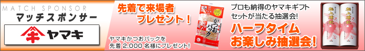 ヤマキハーフタイムお楽しみ抽選会! マッチスポンサー ヤマキ プレゼンツ! プロの料理人も納得の色々な削り節が楽しめるギフトセットがなんと40名様に当たります! ■当選景品 ・ヤマキ ギフトセット 40名様 【場所】スタジアム内 【時間】ハーフタイム |