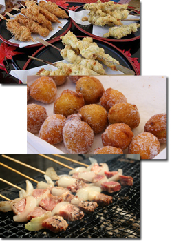 愛南町グルメが目白押し!★愛南カワハギ千尋丸 魚のかわいいイラストと「千尋丸」と書かれた看板が目印のブース。愛南カワハギ千尋丸です。店主自ら獲ってきたカワハギをカラッと揚げています。プリプリの身が特徴の商品です。なかなか味わうことの出来ない逸品ですので、この機会にぜひ、ご賞味ください。 ★ごろく屋 オレンジの提灯が目印のブース。甘いかぼちゃを使った生地で作ったドーナツは幅広い年代に人気の商品。この機会にぜひお召し上がりください。 ★大西牧場 経営する牧場で育った和牛を使ったバーベキュー。炭火で焼いた味は格別です。その他、にも魅力的な商品を取り揃えています。 |