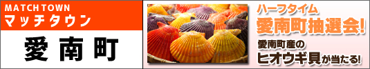 愛南町抽選会! マッチタウン愛南町プレゼンツ!愛南町産のヒオウギ貝が当たる抽選会を開催! ■抽選会の参加方法 当日スタジアム外の愛南町ブースにて抽選券をお渡しします。 ※先着500名となります。 ■当選景品 ★愛南町産ヒオウギ貝 【場所】スタジアム内 【時間】ハーフタイム |