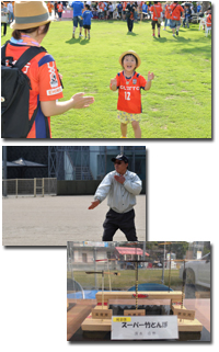 試合前に遊ぼう!柑太パーク! スタジアム外、芝生広場で子どもたちが試合開始まで遊べる広場、その名も「柑太パーク」! 大人も子どもも楽しめる夢のパーク!もちろん今シーズンも様々なアトラクションをご用意してみんなを待っています! 【主な景品付きアトラクション】 1人100円で以下のアトラクションが楽しめる!景品もあるよ! ★キックターゲット ★バスケットゴール ★輪投げなど 【その他の遊具】 こちらは無料で楽しめる!小さいお子様も遊べるよ! ミニサッカーコート、バドミントン、縄跳び、すべり台、トランポリン、パットゴルフ、フラフープ、なわとび、けん玉、などなど ※雨天の場合は中止となります。また実施遊具に関しては当日変更になる可能性がありますのでご了承ください。 試合前は柑太パークにみんなあつまれー!! 【場所】イベント広場 柑太パーク 【時間】13:00~15:30 |