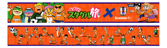 | ★ぺろり!スタグル旅 × 愛媛FC クリアファイル <2枚セット> 「ぺろり!スタグル旅」コラボポスターデザインと愛媛編のキャラクターがデザインされたバージョンと、能田先生が描いた愛媛FC選手たちのイラストバージョンの 2枚セットとなっています! 300セット限定の販売となります。 【価格】500円(税込) ※ファンクラブ価格の適用はありません 販売数:300セット) |