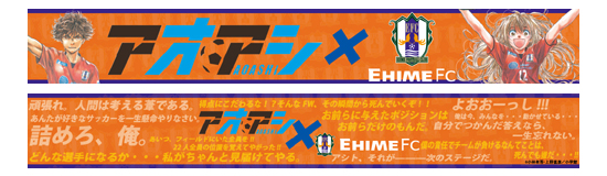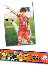 大型ビジョンも「愛媛サッカー漫画祭り」バージョンに! 試合前や試合中に大型ビジョンに表示される内容もこの日は、「愛媛サッカー漫画祭り」特別バージョン! 「ぺろり!スタグル旅」や「アオアシ」がどんどん登場します! 【場所】スタジアム内 大型ビジョン 【時間】試合前・試合中など随時 |