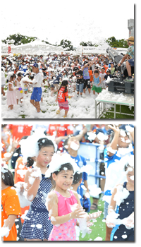 泡フェス開催! 話題の泡フェスがニンスタで楽しめる! 泡マシーンから大量の泡が飛び出す!大人も子どももみんなで泡まみれになって遊ぼう! ※服に付着してもシミ等の汚れにはならない泡ですが多少濡れますので、がっつり遊ぶ人は着替えを用意してください!お子さまは水着で来てもベター! 【場所】スタジアム外 イベント広場 【時間】1回目 17:30/2回目 18:20 【協力】えひめこどもの城 |