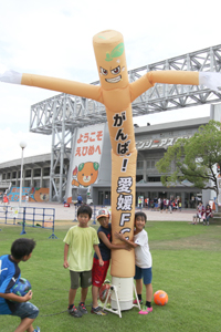 その他ファンタスティコなイベント満載! 先日いきなり広場に出現した4mのオ~レくんのスカイダンサー!これを使った的当てゲームなどさまざまなイベントを開催します! さらに各アトラクション(有料 1回100円)に参加してくれたお子さまにはお菓子や文具などのプレゼントもあります! 【場所】スタジアム外 イベント広場 |