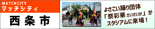 よさこい踊り「祭彩華」 マッチシティ西条市からよさこい踊りの団体「祭彩華」(さいさいか)の皆さんが来場! 迫力のよさこいパフォーマンスを披露してくれます! 【場所】スタジアム外 イベント広場 【時間】18:05頃~ |