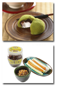★やまびこお取り寄せスィーツとしても超人気の霧の森大福や、特産品の新宮茶を使った各種商品をご用意! |