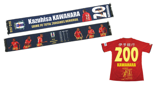 河原選手“愛媛FC”通算200試合出場記念グッズ 8月18日(土)ヴァンフォーレ甲府戦にて河原和寿選手が愛媛FCでの通算200試合出場を達成いたしました。 2013シーズンに愛媛FCに加入してから6年間、大黒柱としてチームを引っ張ってきたからこその大記録です。 赤井秀一氏(現愛媛FCレディース監督)が持つ愛媛FC歴代最多出場記録(276試合)の更新へ、今後のますますの活躍を期待するとともに、今回の記録をお祝いする記念グッズを販売いたします。 ☆河原和寿選手愛媛FC通算200試合出場達成記念マフラー 【通常価格】1,620円(税込) 【ファンクラブ価格】1,450円(税込) ※お渡しは10月中旬を予定しております。 ☆河原和寿選手愛媛FC通算200試合出場達成記念スペシャルプリント ・金色の特別プリントにて、「背番号:200 ネーム:KAWAHARA 河原選手スペシャルシルエットプリント」が入ります。 ・本プリント単体ではご購入いただけません。本プリントを施す「2018オーセンティックユニフォーム」または「フットボールTシャツ」を同時にご購入ください。 【通常価格】3,400円(税込) ※ファンクラブ価格の適用はございません。 ※お渡しは10月初旬を予定しております。 ![]() |