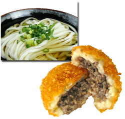 AWAY讃岐のグルメが殴り込み!★木の埼うどん うどん県の本場のうどんが味わえる!さぬきうどんを販売! ★コロ家 カマタマーレ讃岐のスタジアムグルメ「カマコロ」!外側は香川県産のじゃがいもを使っているから甘くておいしい!中身は肉まんみたいに具材が詰まっていてとってもジューシー! |