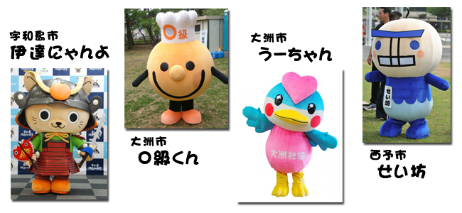 西日本豪雨の被災地域からゆるキャラたちが駆けつける! 先日の西日本豪雨で特に被害を受けた宇和島市、大洲市、西予市からゆるキャラたちが駆けつけてくれます! えひめ国体・大会1周年記念イベントの開会式や壮行会などを盛り上げてくれます! ![]() |