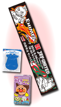 マッチスポンサー 四国明治プレゼンツ! ご来場いただいた方先着1,000名様に「四国明治×愛媛FC オリジナルタオルマフラー」をプレゼントいたします! 掲げたり、振り回したりして愛媛FCを応援しよう! また、先着3,000名様に「うしさん食器用スポンジ」もプレゼント! さらに!ご来場いただいた小学生以下のお子様には先着1,000名様に「アンパンマンのぶどうとりんご ジュース(125ml)」もプレゼント! 【場所】メインスタンド/バックスタンド/ホームゴール裏 各入場口 【時間】16:00~(開門時※先行入場は15:45) |