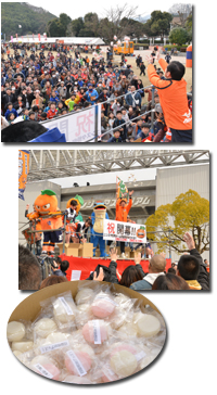 松山市プレゼンツ!餅まき開催! ニンスタ恒例の餅まきを開催! 今回はなんと1500個のお餅が乱れ飛ぶ!遠慮なんかしないでどんどんお餅をGETしてください! さらに!当たり付きのお餅をGETした方には豪華景品をプレゼント!! ★当たり景品 ・松山市提供 スポーティングタオル ・日本代表・なでしこジャパン代表グッズ ・愛媛FCグッズ などなど! 【場所】スタジアム外 イベント広場 【時間】14:10頃~ |